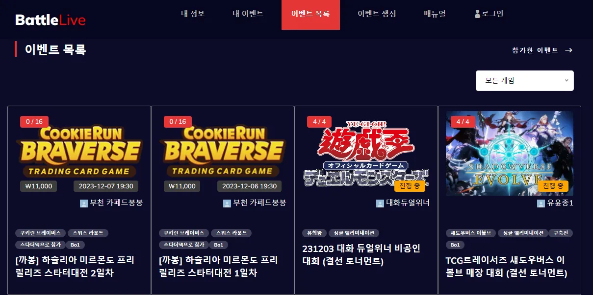 카드게임 뿐 아니라 다양한 형태의 대전형 대회를 모두 지원합니다.