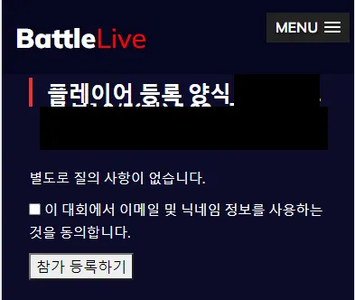 참가한 이벤트마다 다른 별명을 사용할 수 있습니다. 이벤트 참가시 기본 별명은 배틀라이브에 설정된 별명을 사용하나, “참가자명 변경” 버튼을 누르고 사용하고 싶은 다른 이름을 입력하여 해당 이벤트에서만 사용할 별명을 사용할 수 있습니다.
