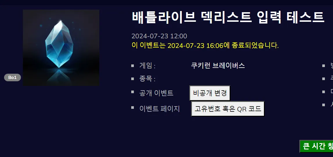 이벤트의 진행은 여러가지 기능 버튼을 통해 이뤄집니다. 기능 버튼은 “이벤트 관리” 라는 버튼을 누르면 나타납니다.