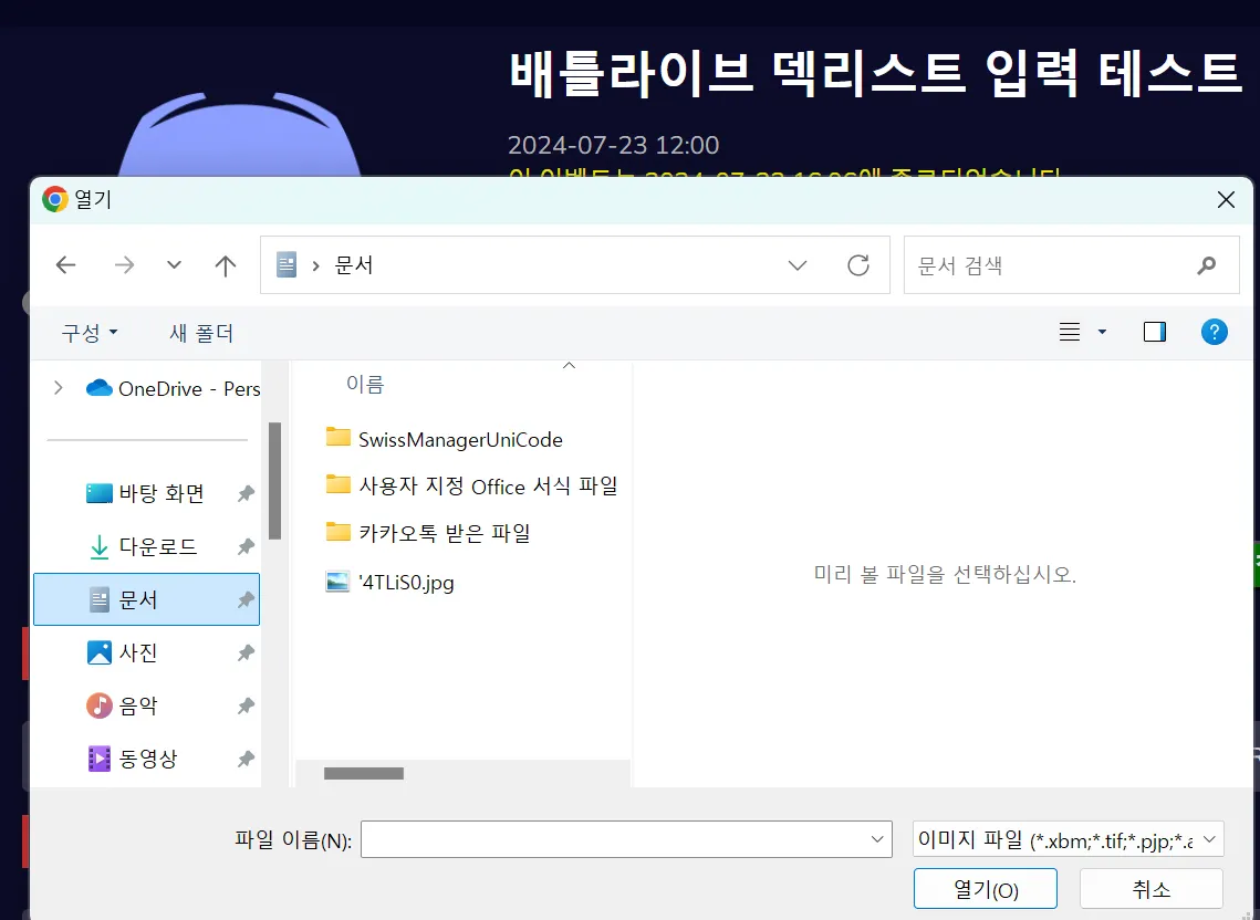 클릭하면, 이미지 파일을 고르는 화면이 나옵니다. 업로드하기 원하는 이미지 파일을 선택하고, “열기”를 누르세요.